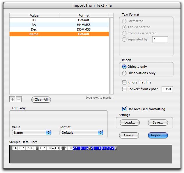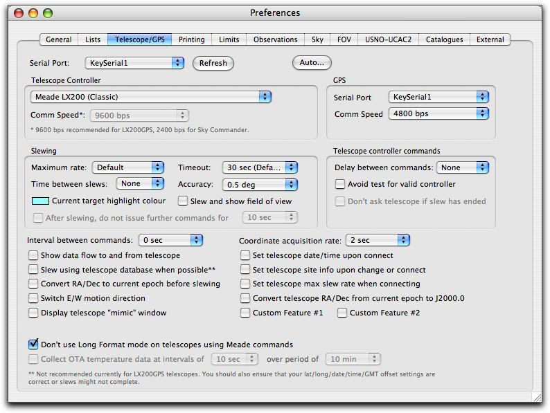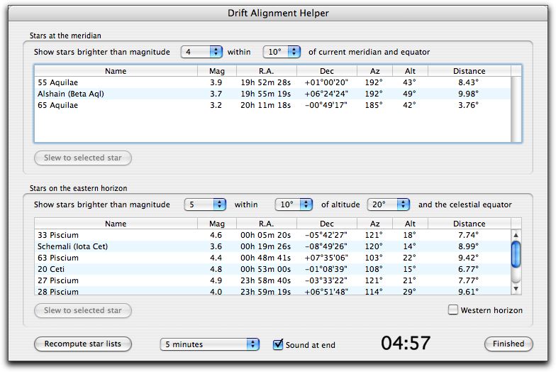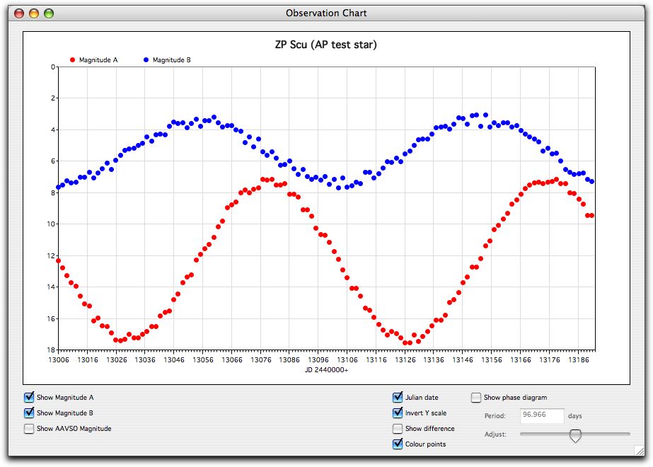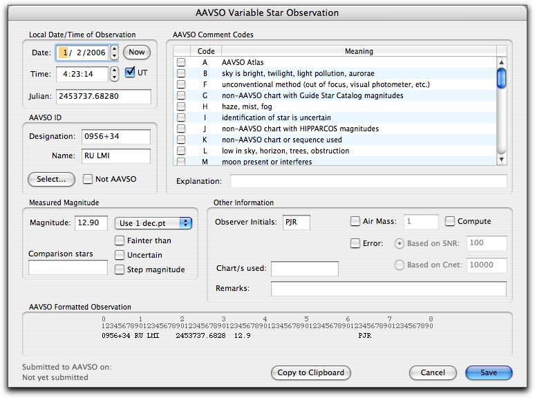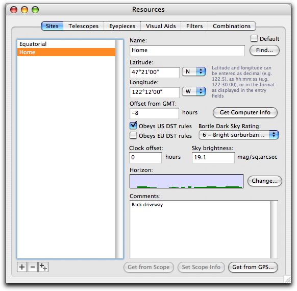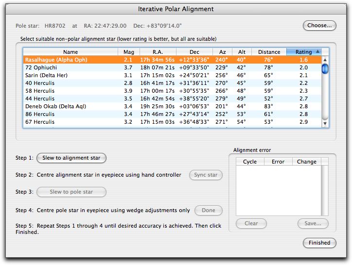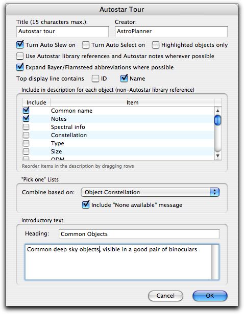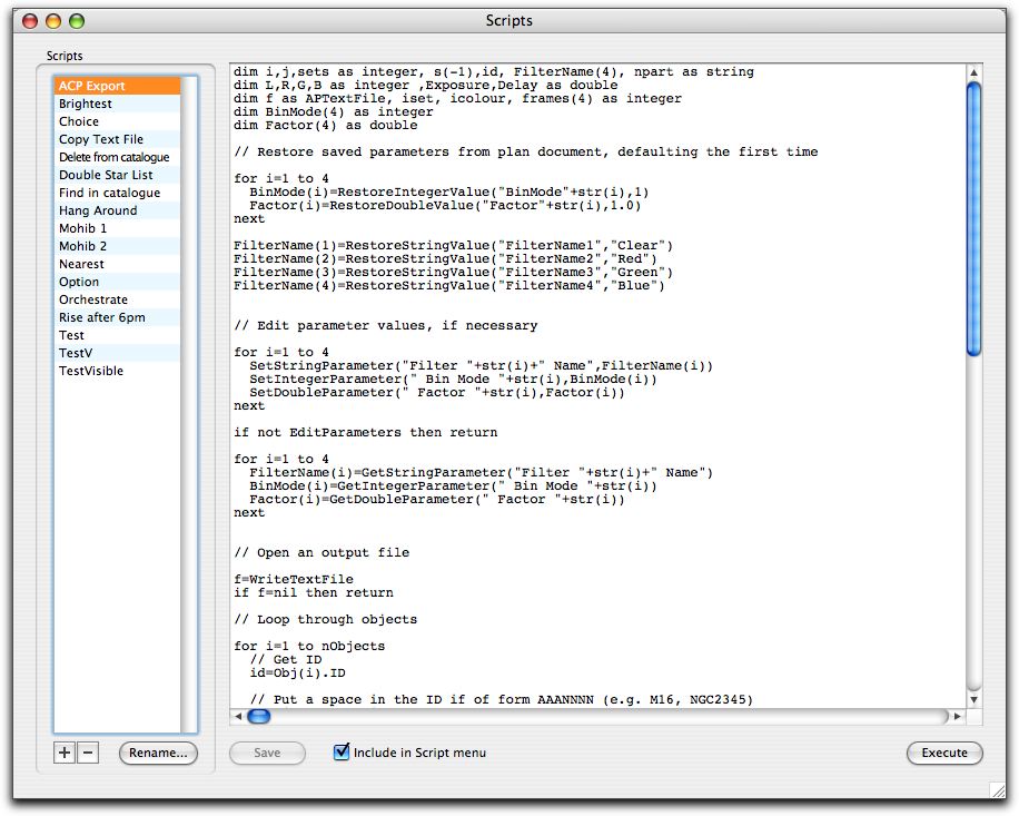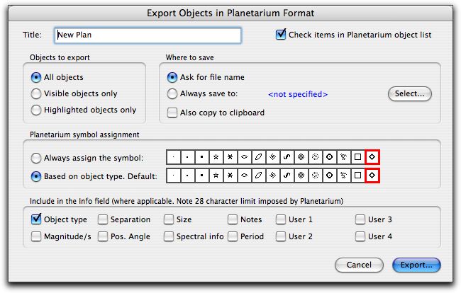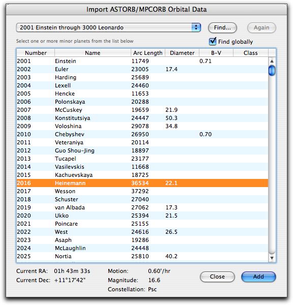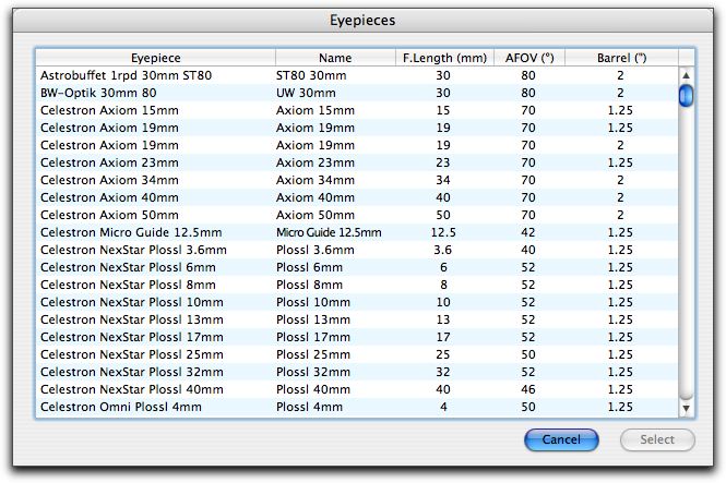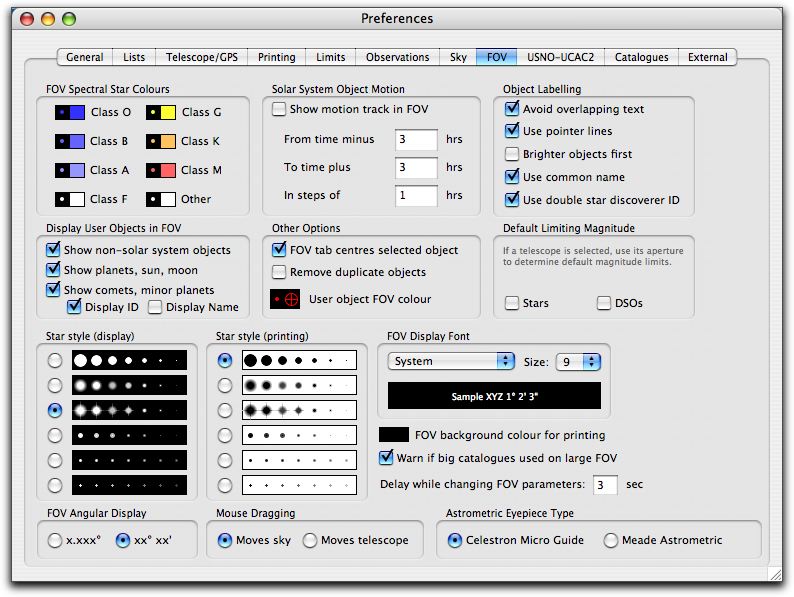 The screen shots below illustrate a number of AstroPlanner's many and varied features. A more exhaustive list of features is available here. Most of the images are from the Macintosh OS X version, but the Mac Classic and Windows versions have vitually identical features.